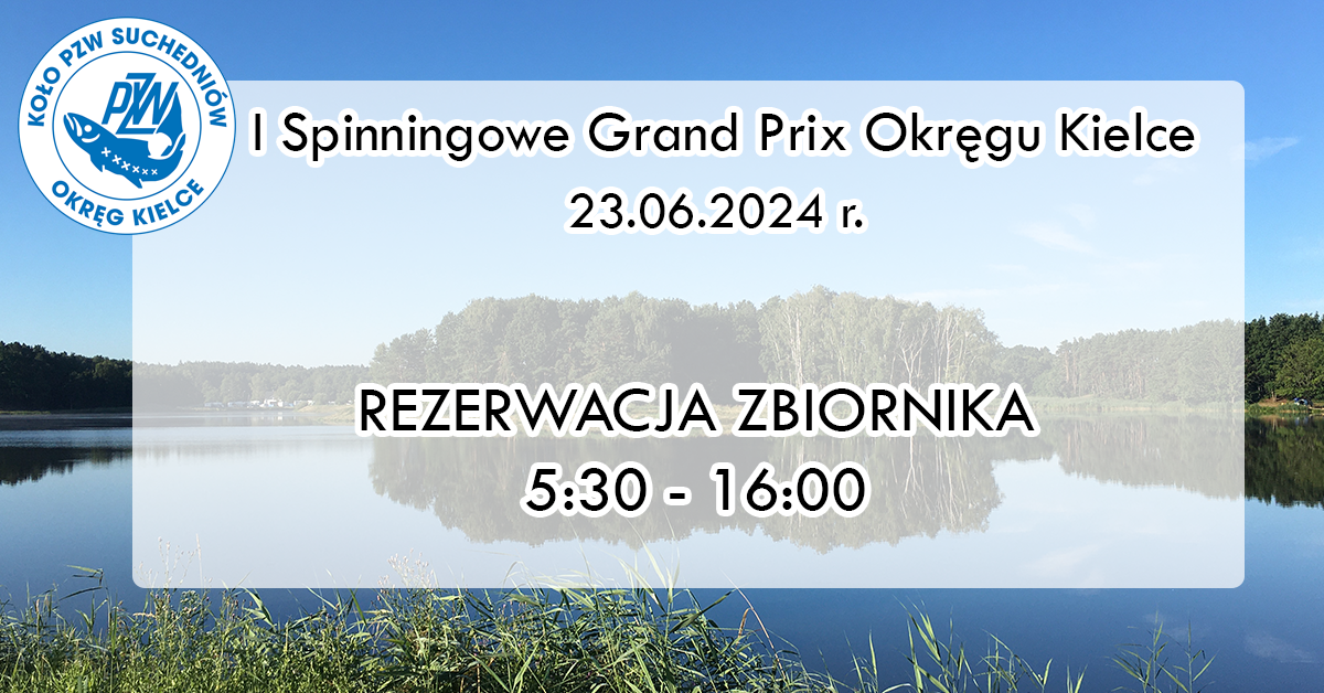 W związku z obywającymi się nad zalewem w Suchedniowie zawodami wędkarskimi „I Spinningowe Grand Prix Okręgu Kielce” zbiornik będzie zarezerwowany w dn. 23.06.2024 r. (niedziela) w godz. 5:30 – 16:00.